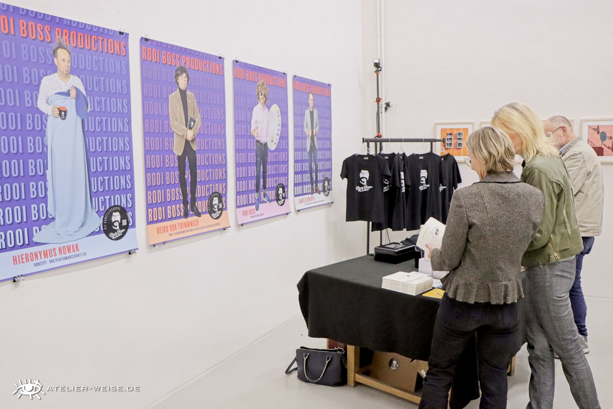 Die interdisziplinäre Künstlergruppe Rooi Boss Productions (Hieronymus Nowak ∙ Konzept- und Performancekünstler, Heiko von Trimmmich ∙ Poet, Literaturkritiker und ein Intellektueller der alten Schule, Rooi Boss ∙ Maler und Gitarrist, Janusz Grünspek ∙ der Initiator der Künstlergruppe) versteht Kunst als ein narratives System, das sich im Zusammenspiel von Wahrnehmung, Sprache und sozialer Interaktion entfaltet. Im Zentrum ihres Schaffens steht die Auseinandersetzung mit der Rolle von Erzählung – nicht nur als Medium künstlerischer Gestaltung, sondern als grundlegende Struktur menschlicher Erfahrung.